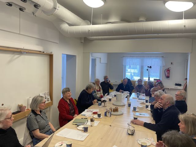 Inte tänkte jag aktivera mig nämnvärt i Hobbygrupperna heller men har kommit att njuta till fullo av de Pratgladas aktiva gäng och våra inspirerande diskussioner. Vi har diskuterat allt från språkbruket i media till varför det är så tråkigt i kyrkan. Gruppens moderator är väl förberedd på diskussionsämnet och leder åsiktsyttringarna med fast hand – alla kommer till tals! Jag hoppas att flera pensionärer blir nyfikna på gruppen.