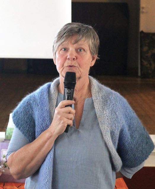 nu fick komma in i det kännspaka sorlet i salen. Det hade ju gått en månad sedan senaste träff och mycket fanns att utbyta tankar om. Så småningom var det dags för öppningen av mötet och Kurt Lindroos kallade fram Birgitta Rittinghaus, som fungerade som speaker och som den vana talare hon är, så inledde hon med en ytterst charmig