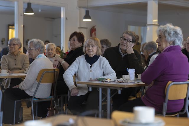 Stina Engblom Colliander knackar i mikrofonen och kallar den månghövdade stimmande församlingen till lystring. Det är pensionärsföreningens första höstträffen i Brankis. Många av föreningens smågrupper har redan startat sin verksamhet men 19.9 hålls första månadsträffen.