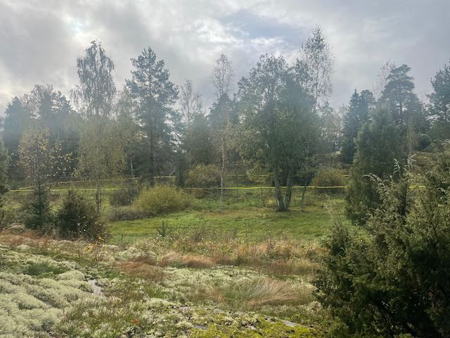 Här står vi vid trädgården med Gräggböle träsk i bakgrunden