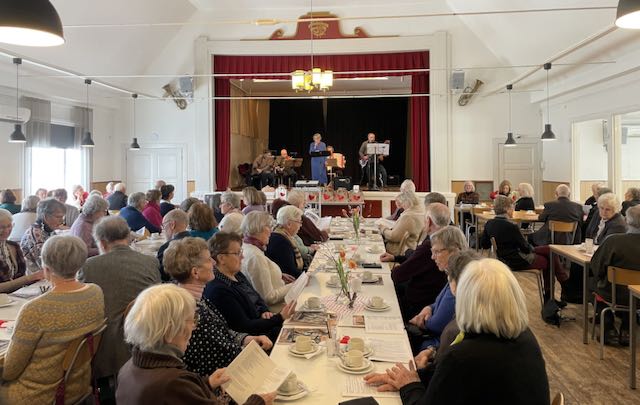 Vårt månadsmöte i en ljuvlig April-sol lockade ca 133 pensionärer för att ta del av Grupp 7´s program under ledning av Clara Kronqvist-Sundström och Christina Ahlsund. Efter att Clara välkomnat oss alla samt inbjudna medlemmar från Pohjola Norden så gav hon ordet till vår ordförande Gunnel Jansson som informerade om både vad som hänt och vad som skall hända. Vi fick bl a höra om den senaste lyckade seniorföreläsningen i samarbete med Kombi där YLE´s Europakorrespondent Mette Nordström berättade om ”Hur kriget förändrat EU” och om hur det varit att bo och arbeta i Europas hjärta Bryssel. Läs mer i Parentesen om hennes föreläsning.